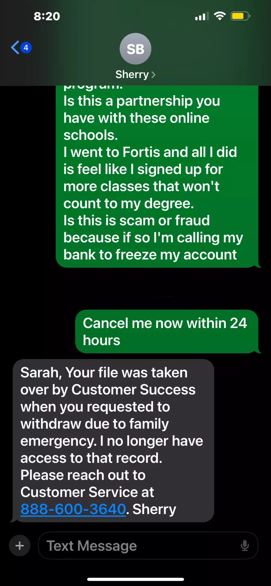 The bank has them blocked and I even got the money back by my back because I cancelled so fast before it processed yet they are trying to tell me I owe for classes I never started.