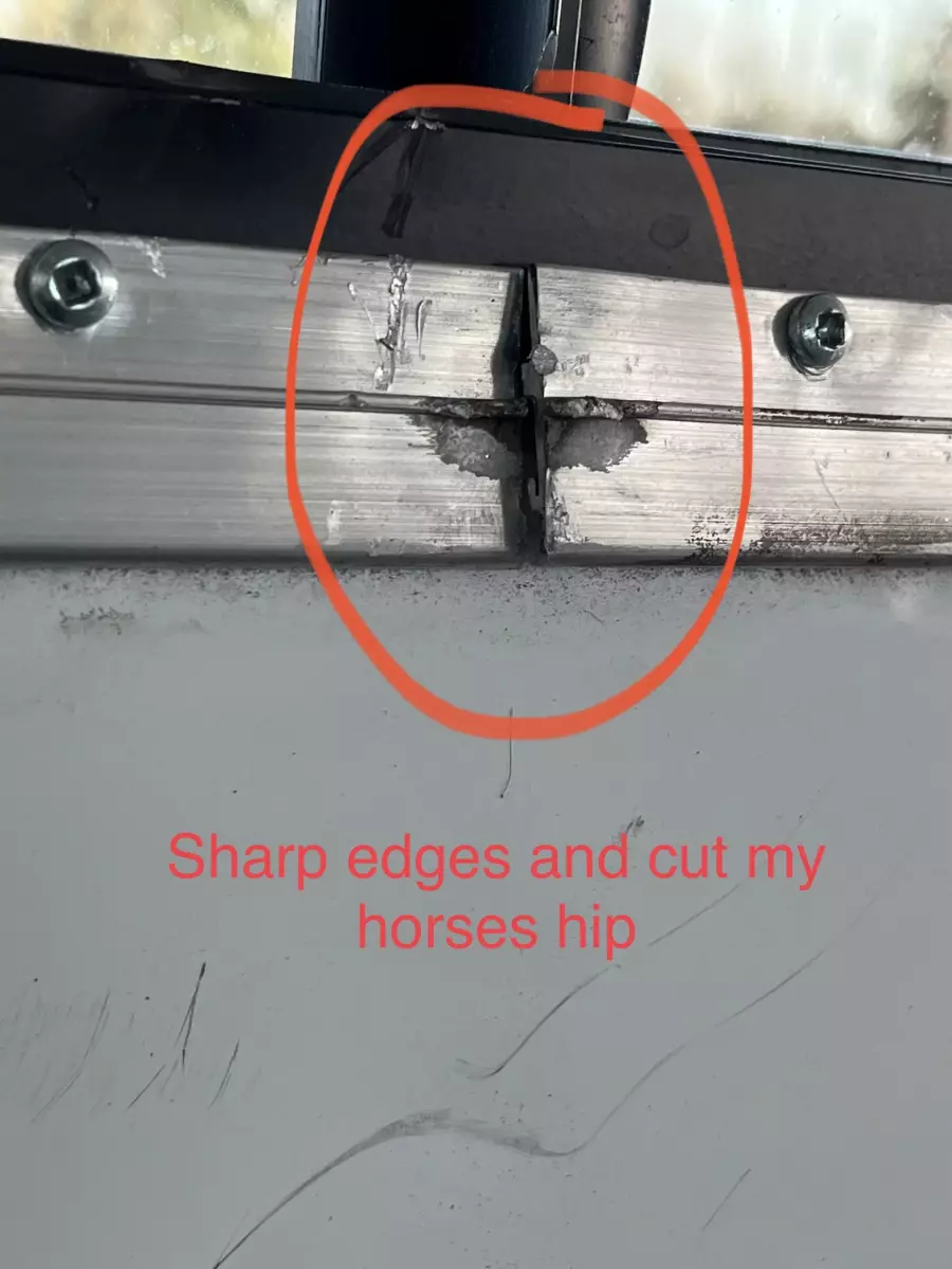 This trailer is as stated earlier less than 6 months old and besides the support beam failing the trailers window seals have peeled off as well as the tack room door stop has broken completely off.