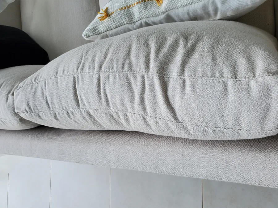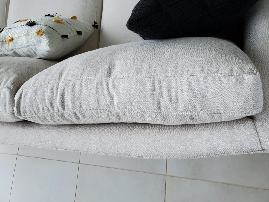 For the quality problem, I contacted the store and was sent on a wild goose chase, passed back and forth between a scheduler company, the warranty company and the store. Numerous conversations. Numerous phone menu navigations. Finally the technician came examined the couch and said the front main beam was made of two pieces held together by staples. The staples were bent. He said he would take it apart, remove the staples and use screws to secure it better if was authorized to repair it. Why didn’t Arhaus use screws in the first place? He said he would put in a report to Arhaus and they would contact me about next steps.