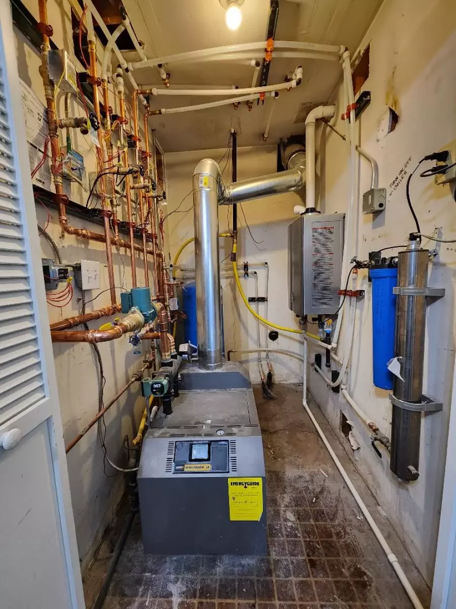 Customer returned down stairs, asked about noise and why Tech was using the space between the water heater and the furnaceThen customer said "I was mistaken the last guy did it on the other side of the water heater (between it and a vent, a gap of about 5-inches - which required 4-feet of cable be exposed to fill gap between machine and clean-out)Tech brought up that this was an unsafe distanceTech reasoned that if it was done regularly like this before then he should be able to do it too - again the customer insistedRootered ~feet, taking care to feed cable slowly because of unsafe distance