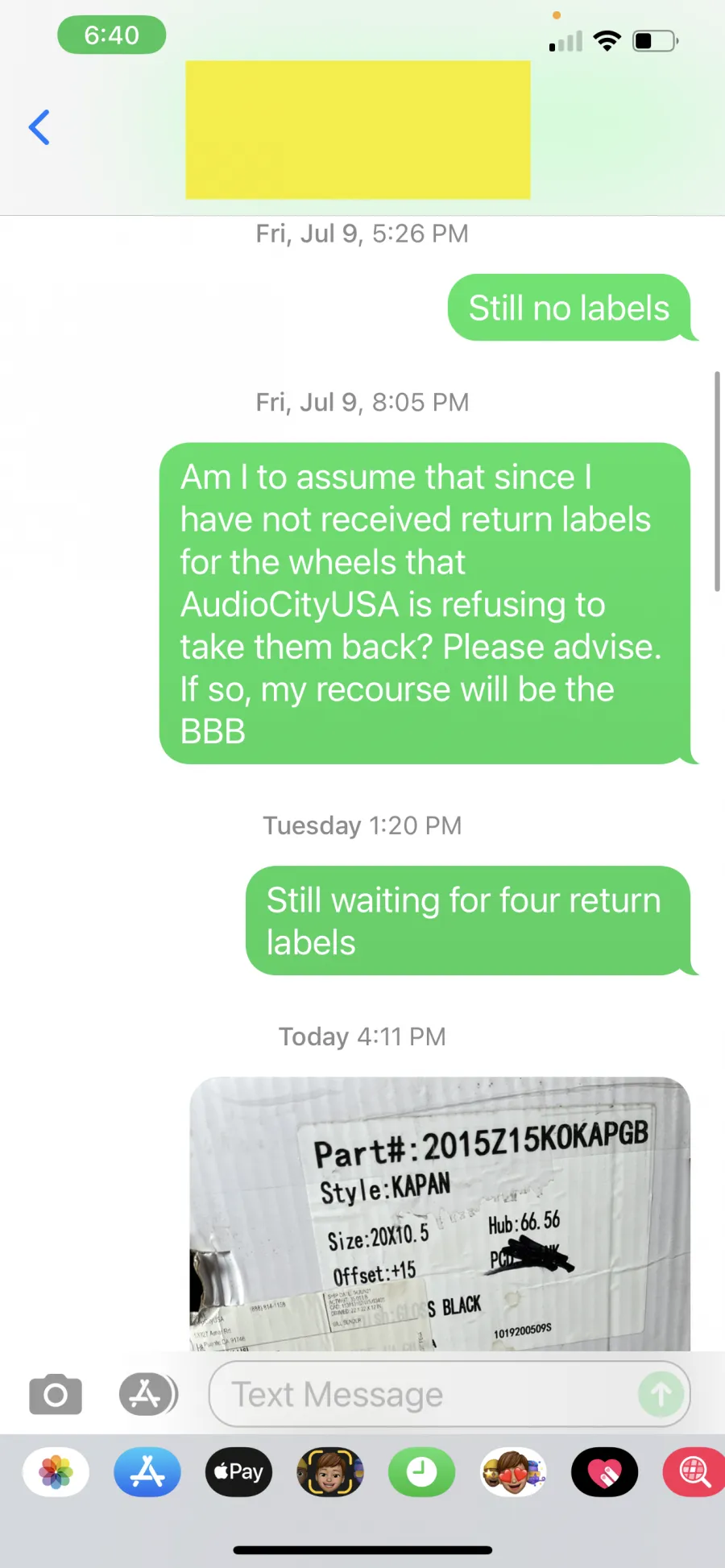 Placed an order for wheels and tires on 1/26/20. received the incorrect tires on 2/11/20. Now Audiocity is instructing me to pay to have the tires dismounted, packaged and returned before they provide the correct tires.