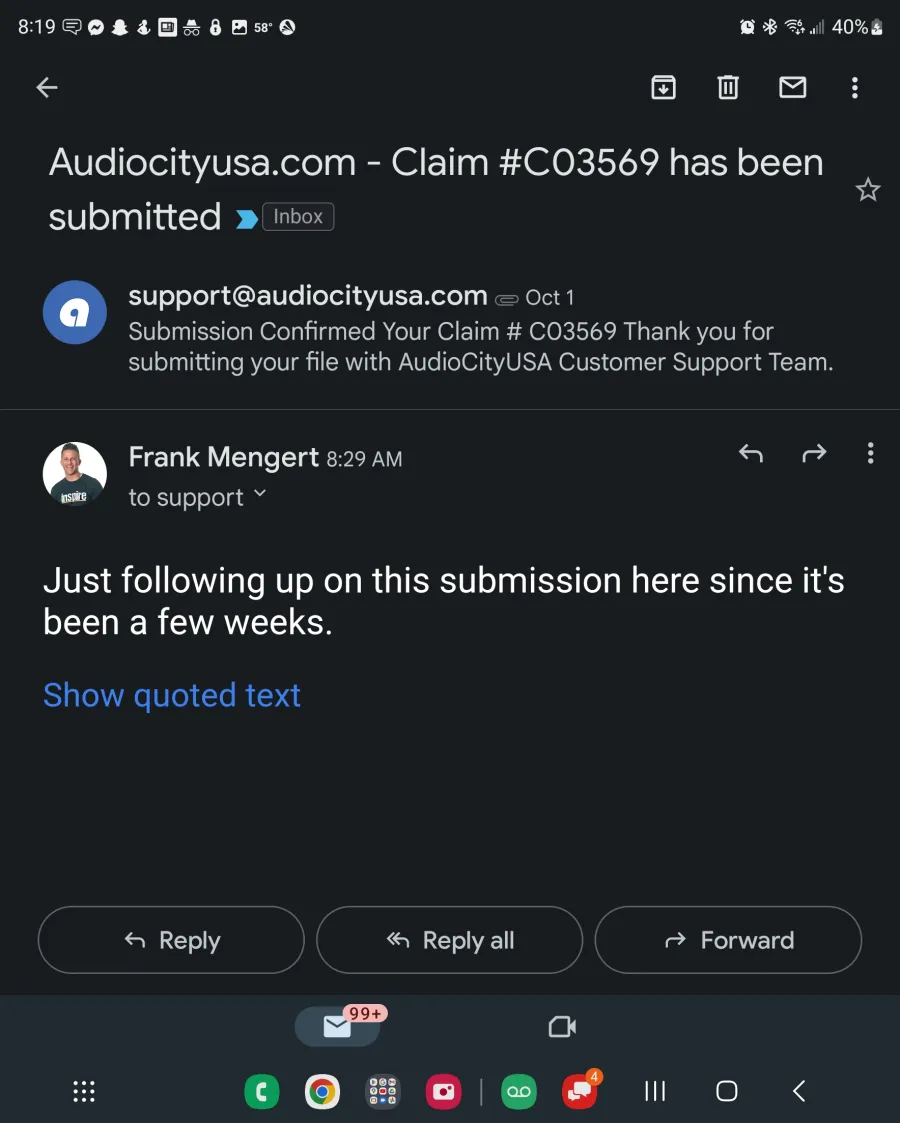 Audio City is a train wreck!!!! As I sit here looking at the other complaints, I am amazed that they are still in business. I wish I would have seen these complaints before I conducted business with them. The promised delivery date was missed by nearly a month, they mounted the wrong tire brand and size tire and they told me there was nothing I could do about it. I have all the correspondence, emails, texts, etc to back up my claims, should they try to debunk my claims. I would love to publicize a conversation with them if they'd like to defend their business practice. Just say when!!!!!