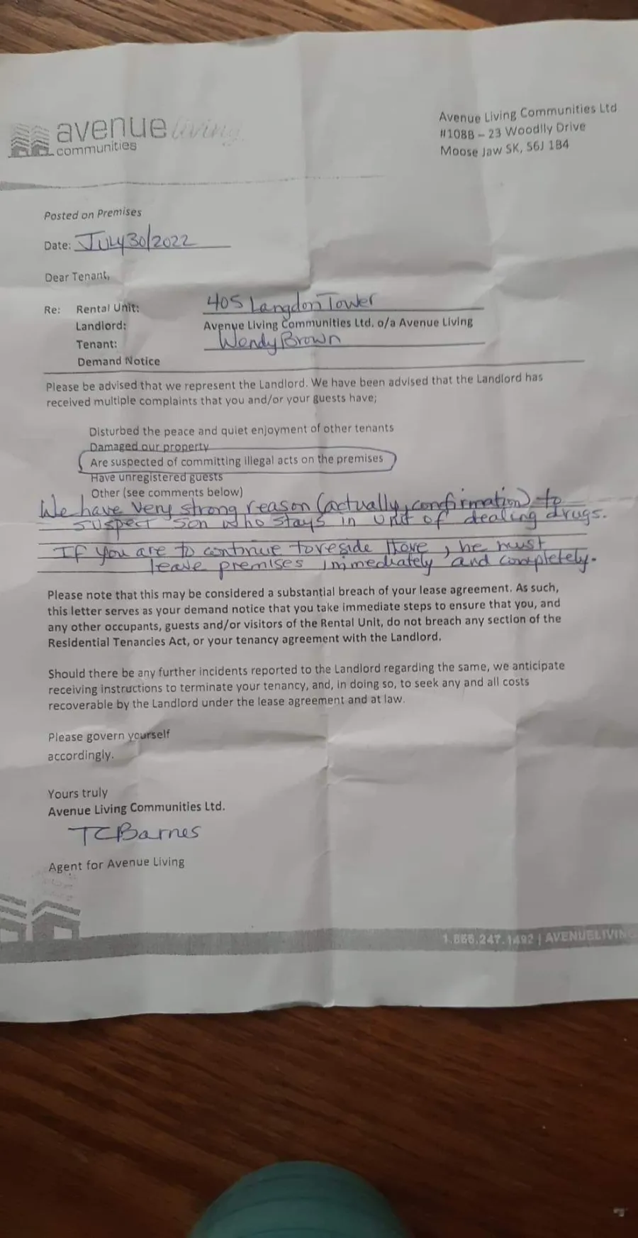 THEY ALSO DONT GIVE NOTICE BEFORE ENTERING CERTAIN PEOPLES SUITES MY BUDDY RECENTLY GOT A NOTICE THAT THEY WERE NOT RENEWING HIS LEASE AND NOW ARE LEAVINT HIM HOMELESS AS OF DECEMBER 30th THE BUILDING MANAGER IN MOOSE JAW HER NAME IS TWYLA RACINE TOTAL B