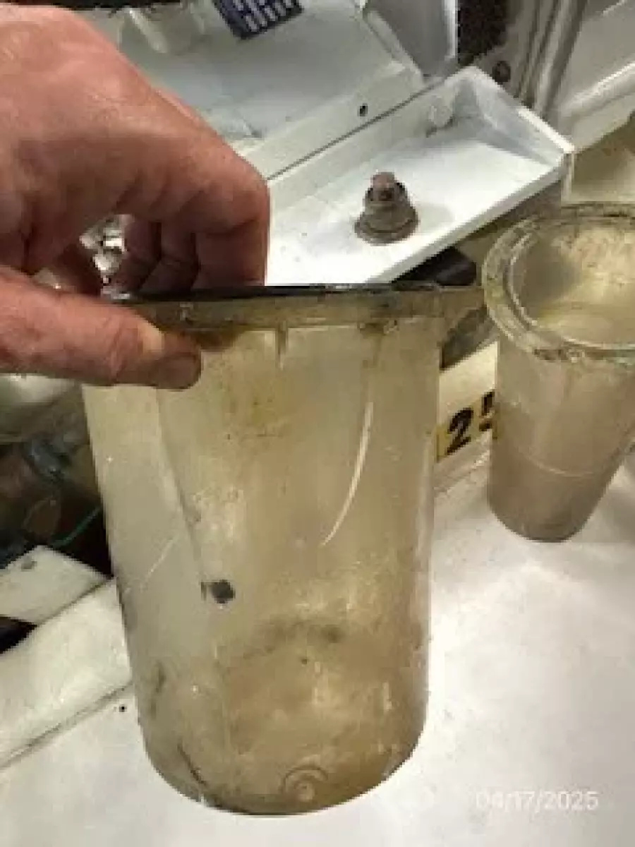 The big trouble started around launch time in May 2025. Given the vessel was listed for sale (by Bay Marine), I also paid Bay Marine for a “concierge launch service”. They told me that they would run through all operating systems and make sure everything was operating correctly so I would be off to a clean start for the Spring. Sounded good for about $500ish. They soon advised me that the water pump to the cooling system was broken and two thru-hole water strainers had cracked glass (see pics). Hmmm-what could cause that? They quoted me $1,500ish to fix these two glass parts. As $1500 was ridiculous, I advised them I would buy the parts myself and install them which I did the night before pickup for a few hundred dollars. They had my pickup date/time and I verified with them the night before to make sure they were running on time as I had a busy schedule the day of pickup. I arrived to a vessel with an engine room full of dirt and water. It took me hours to find their on-site mechanic, Miguel, to try and get finished. Four hours later, with a trashed engine room and no working a/c, I left, still unaware what was coming my way. I followed up with a request for a partial rebate from the concierge service as they did not test the a/c system but they never responded.
