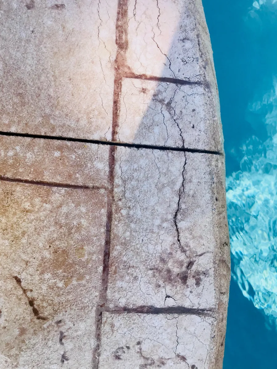 Pool was installed, followed by upgraded stamped concrete. Kline was on site for the pour. Two days later, we discovered significant cracks near the edging.