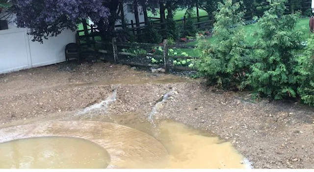 I immediately contacted the relations manager: Laurie Robinson, who advised that she would pass the information to Kline. Lack of communication is a primary downfall of this company. We were never provided with a method of direct communication with the site supervisor, who also happens to be the owner: Kline. Robinson plays the role of a buffer for any complaints or concerns. I found that Robinson knows little about the pool industry and therefore could never provide answers, however was quick to engage in arguments, terminate calls by hanging up, and deflect from the issues. I fully anticipate her response to this post will be that we were rude or loud. I honestly would categorize our conversations as increasingly heated, due to the fact that they were quick to cash my checks in excess $72,000, yet leave our project unfinished for 5 weeks. Total no show. Blue Lagoon initiated another job, leaving my property with mounds of dirt and stone. I have three dogs who inevitably destroyed our carpet with mud for over a month. Kline eventually returned and tried to advise us that the cracks fell within the concrete industry standard. Two separate concrete experts completely disagreed and advised that, over time, this will fall into my pool. Kline offered an extended 2 year warranty on the concrete. We requested an addendum to the contract. That obviously never occurred. Approaching week 6, and the final date of completion per their contract, Kline and crew returned. My husband, once again, expressed his concern about the water run-off. Kline advised that they would create a swale, which would redirect the water flow away from the pool. That evening, we were hit with a severe storm.