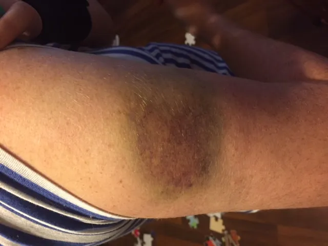 It continues. She was a total aggressive bully in the pasture, once again, I was told she was docile and good in a herd. My gelding had hematoma marks and welts to the point where it was not safe to keep them together. She bites and repeatedly kicks like a maniac in the pasture (she will try to kick and make contact 10-15 kicks at a time). Pictures are posted for proof. She is aggressive to my other horses. I can't forget to mention that she WAS separated upon arrival, but decided one night to JUMP a four foot fence to get in with my geldings. Another "she never did that here" response.