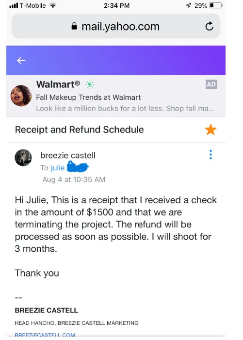 Breezie Castell is nothing short of a complete SCAM, beware.
