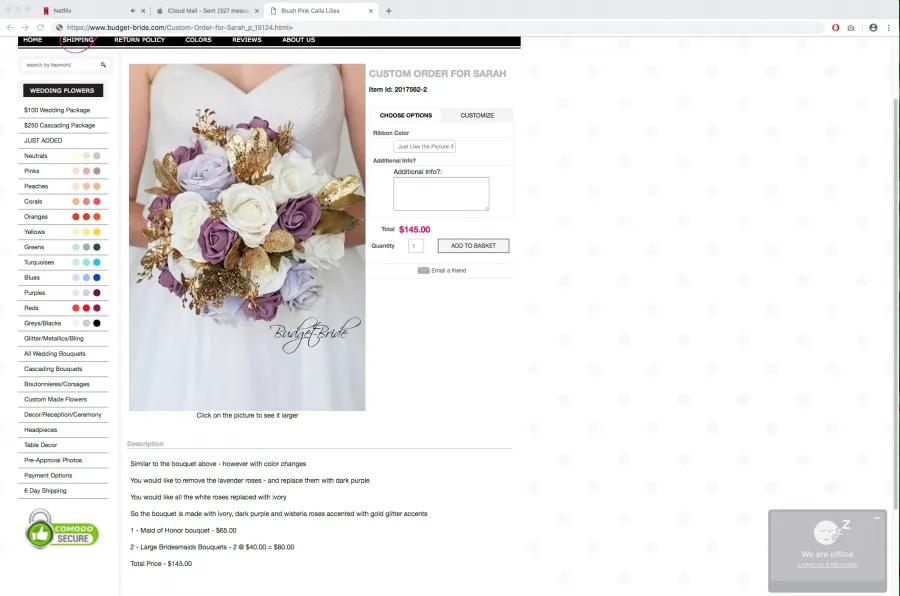 I was very weary of ordering from budget-bride.com when I read some reviews online. What I did notice is that most bad reviews are a few years old. I ordered a $100 package and added 24 add ons which brought me to just under $300. I ordered Sept 26 and my order came on Oct 10. The flowers were perfect for the amount I spent. I did have to trim some of the greenery off because it was a bit too much and looked a little unfinished but the roses themselves were beautiful and I loved the crystal add ins on each flower. The handles were exactly as they looked online. The communication from this company is odd via email as they didn't give me a tracking number so, I was so nervous but, all ended up well. I would recommend them for a bride on a budget. I also spent $2 at my local craft store to add small silver ribbons to some of the items for the men. It seems that maybe this company has made some improvements over the years. I look forward to a great day with beautiful flowers thanks to this business.