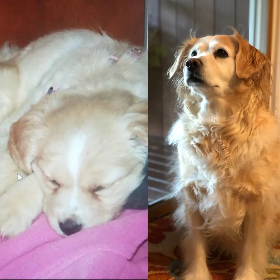 Snoopy! Toy golden retriever! Look at the little guy. He had just got off a long flight a few weeks earlier from c and S ranch. Now, he’s in the big city, in front of a loud construction site. He recovered quickly from the noise, and couldn’t wait to meet the construction workers and see their equipment. Thank you Shannon!