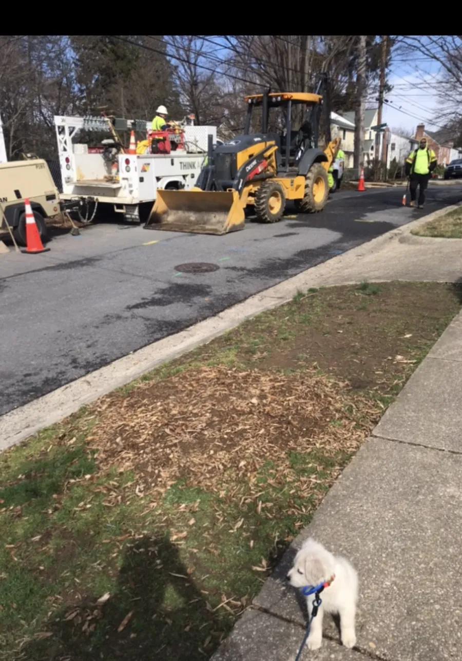 The attached photo shows Snoopy down the street from a construction project. In this photo he’s only 10 weeks old. He recovered very quickly from the loud and unusual noises and then was super curious to meet the construction workers and see all their equipment. This is a great indicator of a fun, happy balanced dog. We are lucky we found C and S Ranch