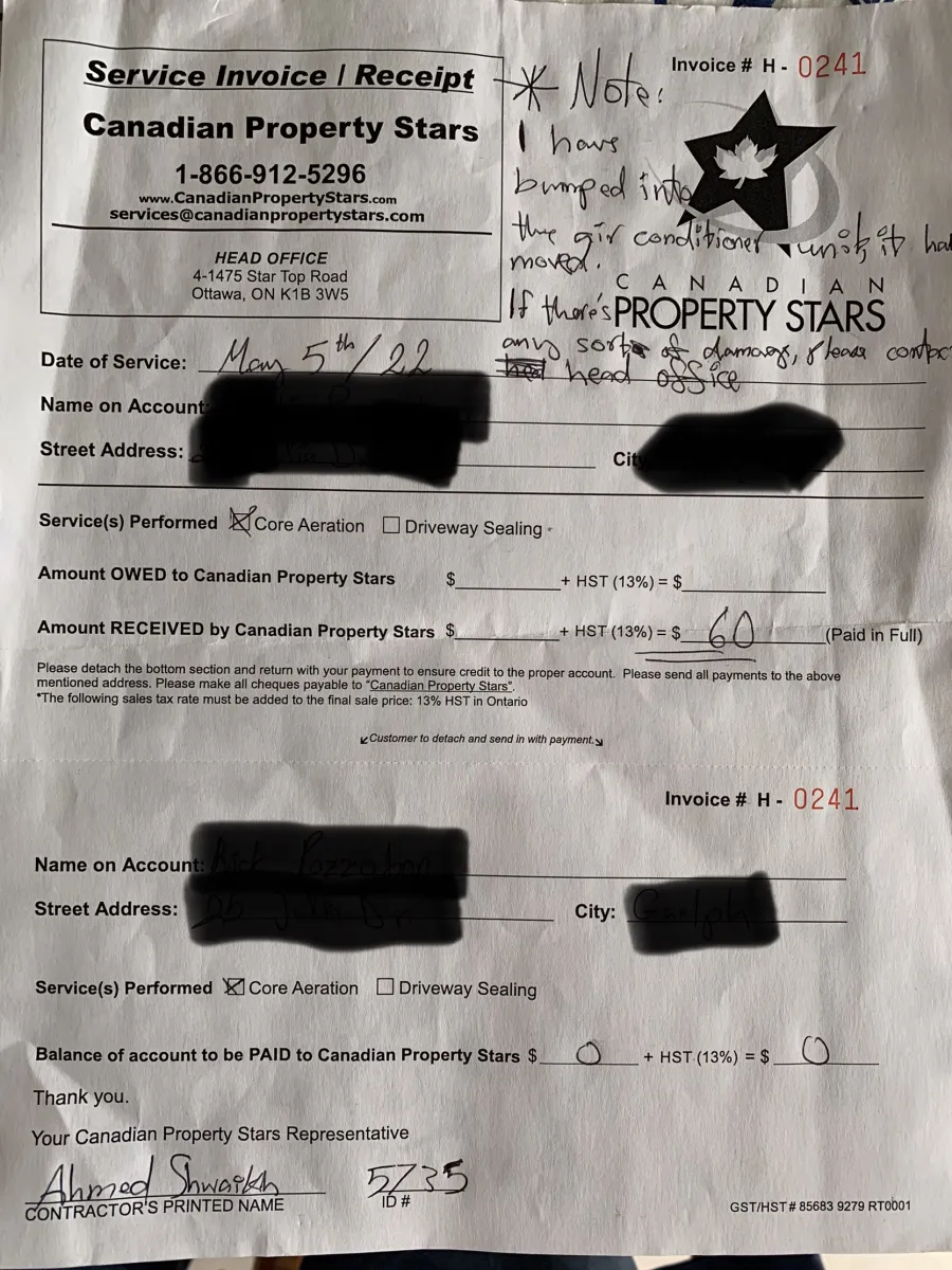 Since the initial aeration and receipt email, I have received no contact from Canadian Property Stars. I understand that this is a challenging time due to COVID, however, as a customer, I would expect at least a mass-email explaining that my service might be delayed and the options available to me (ie rescheduling, refunds, etc).