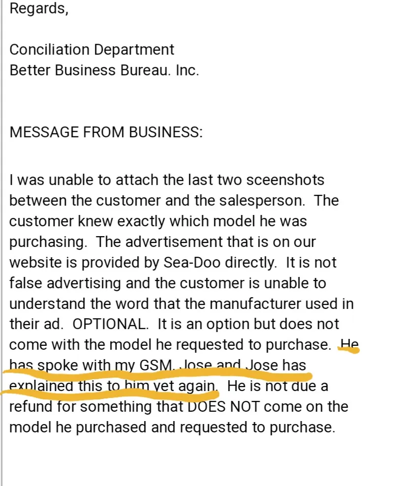 I also attached a screenshot from a complaint I placed on BBB and their response, this dealer lied again because their supposed manager never contacted me. They can reply to this review and add the management conversation with me.