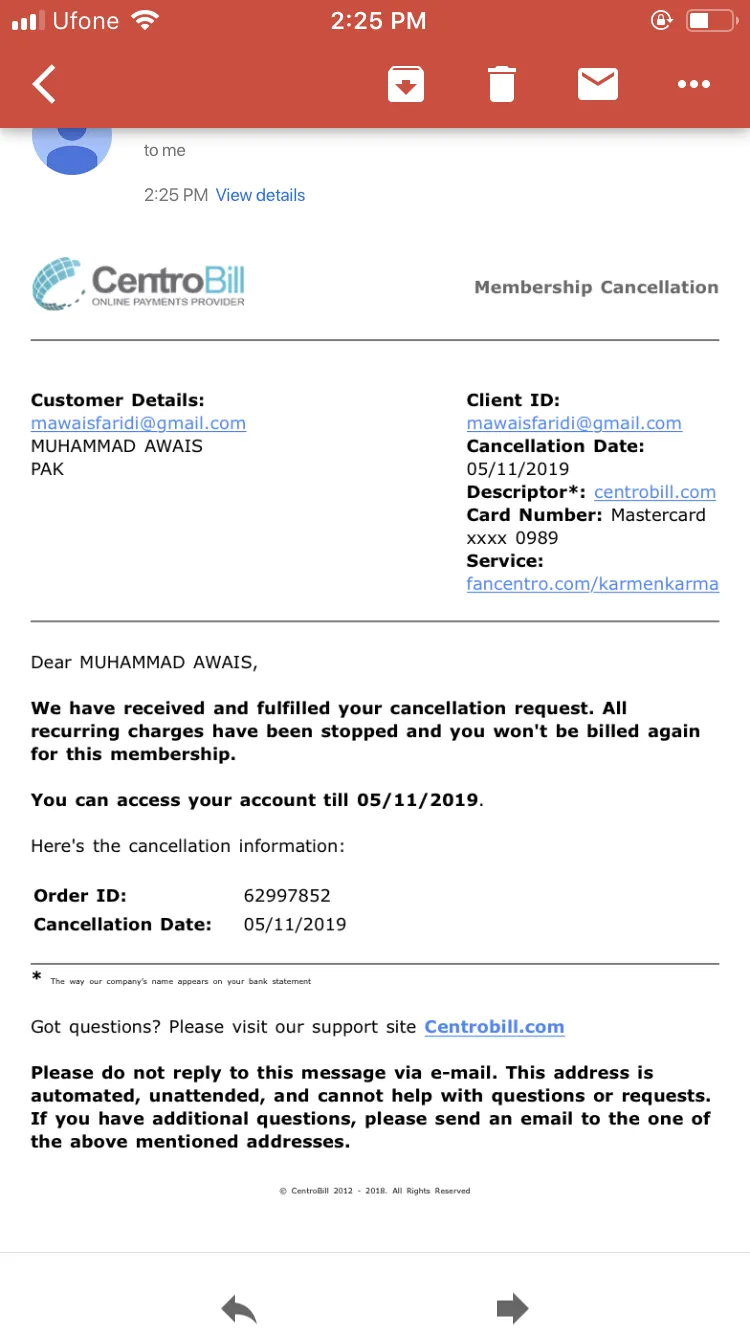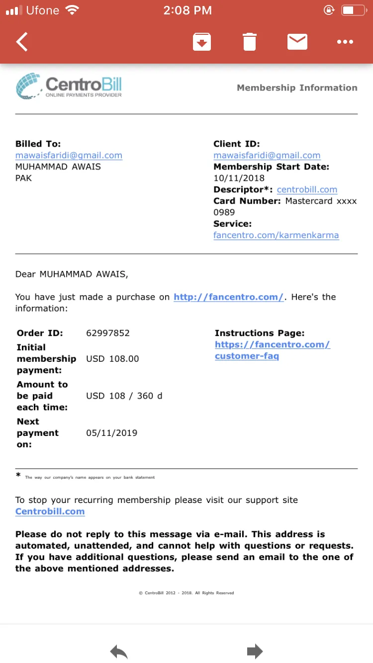 I went to fancentro.com to receive the product and ended up in getting charged $108. Now, I have ordered a refund. Please make that happen. It was wrongly guided to me about the payment.
