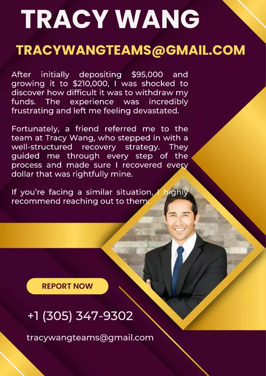Fortunately, a friend referred me to the team at Tracy Wang, who stepped in with a well-structured recovery strategy. They guided me through every step of the process and made sure I recovered every dollar that was rightfully mine.