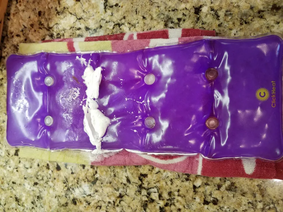 Purchased this product at a home show and it was fairly expensive. Used it when I got home that day and it was great. Went to reuse it later that night, followed the instructions of a pan of boiling water with a towel in it. Kept it in the water approximately 5-7 minutes and used plastic tongs to pick it up. The seam broke immediately in a small spot. Leaked the inside salts all over . Have left numerous messages in the last three days with not one return phone call. It was difficult to even find a number or email address. Nothing listed on the packaging which is quite interesting for a "life time warranty". Ironically no one ever answers the phone during the "business hours" listed on the message. This is a giant scam to rip people off. The packaging does not even show it is from the US. Stay away from this no matter how good it feels at a show. I will also be following up with the RevDex.com, my bank and the Home Show people so they do not let them come back to rip off others! My bank is working to refund my $216