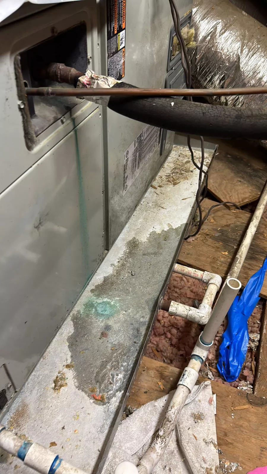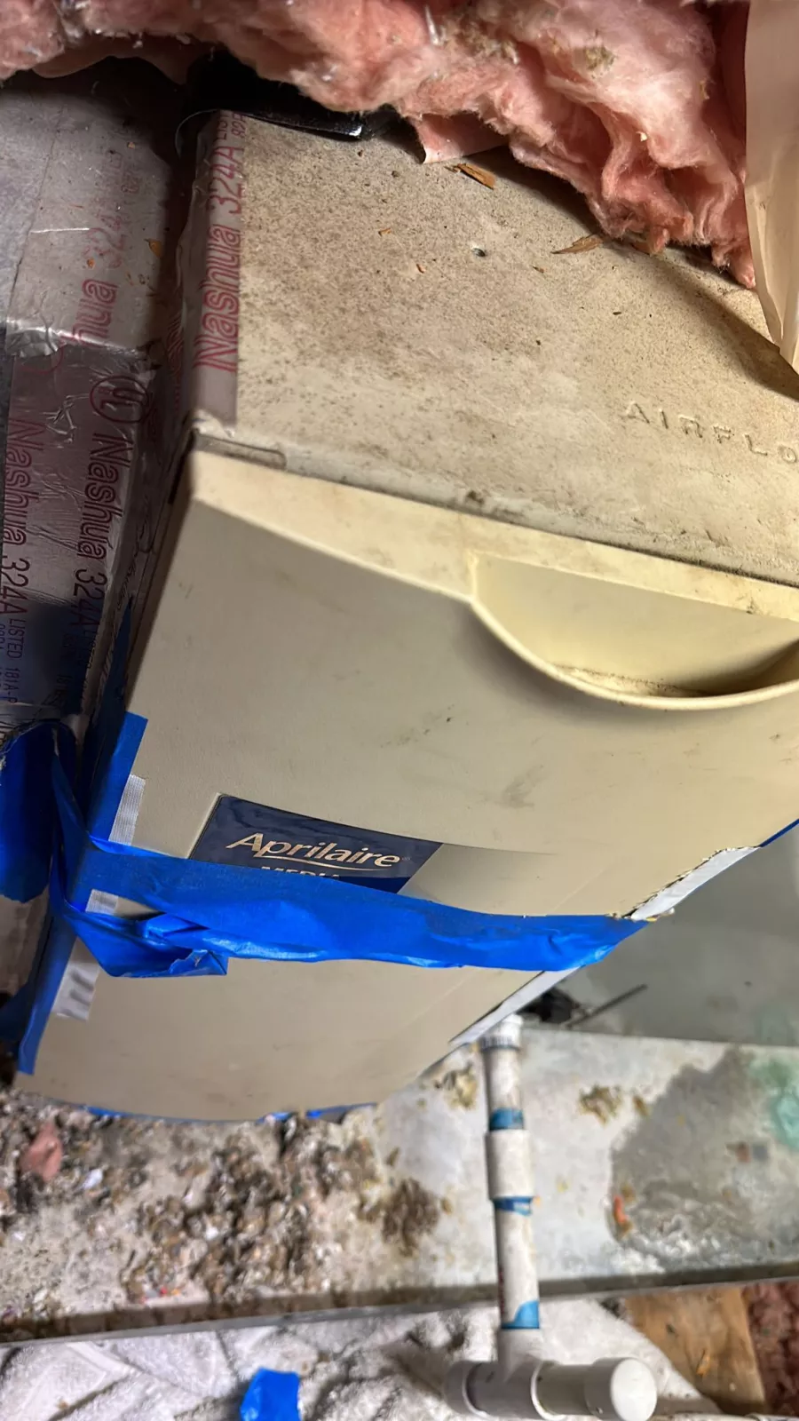 pictures show the Jen-Aire door the tech broke off, now taped in place. the pipe in the other photo is not even close to cold, much less freezing.