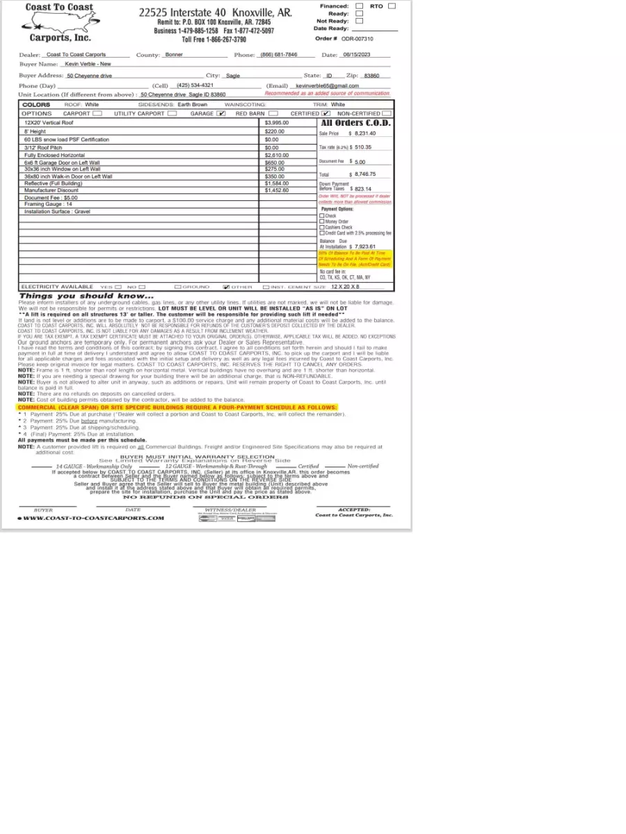 Add contact information for Coast to Coast Carports