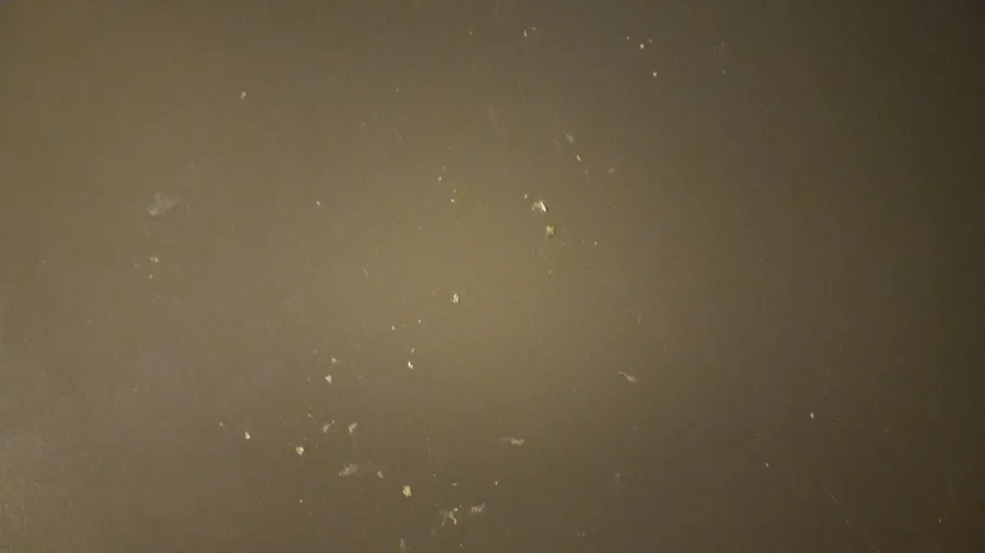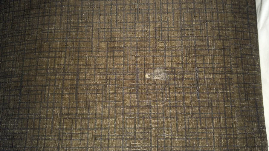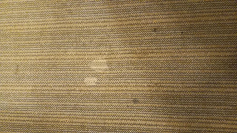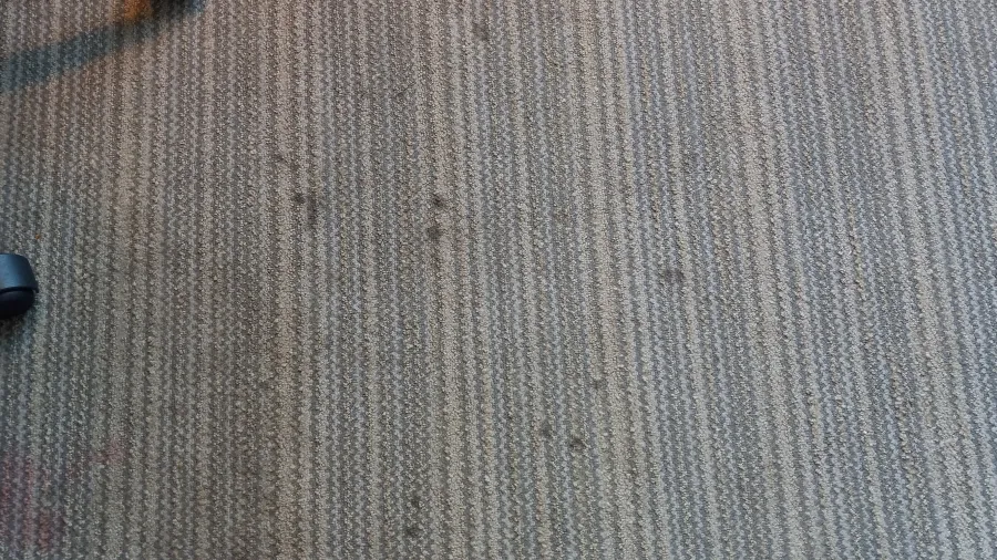 Carpet wasn't vacuumed, water in tub, bathroom looks like it wasn't cleaned properly in years, white crusty stains on counters, desk and dressers, blood stains on pillow inside the pillow case. White stains on bed skirts, many stains in the carpet.