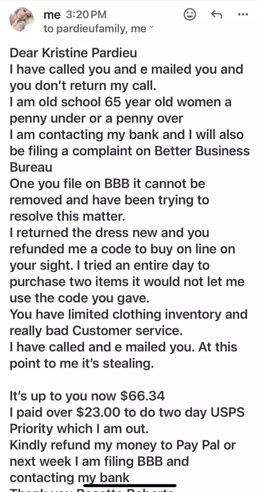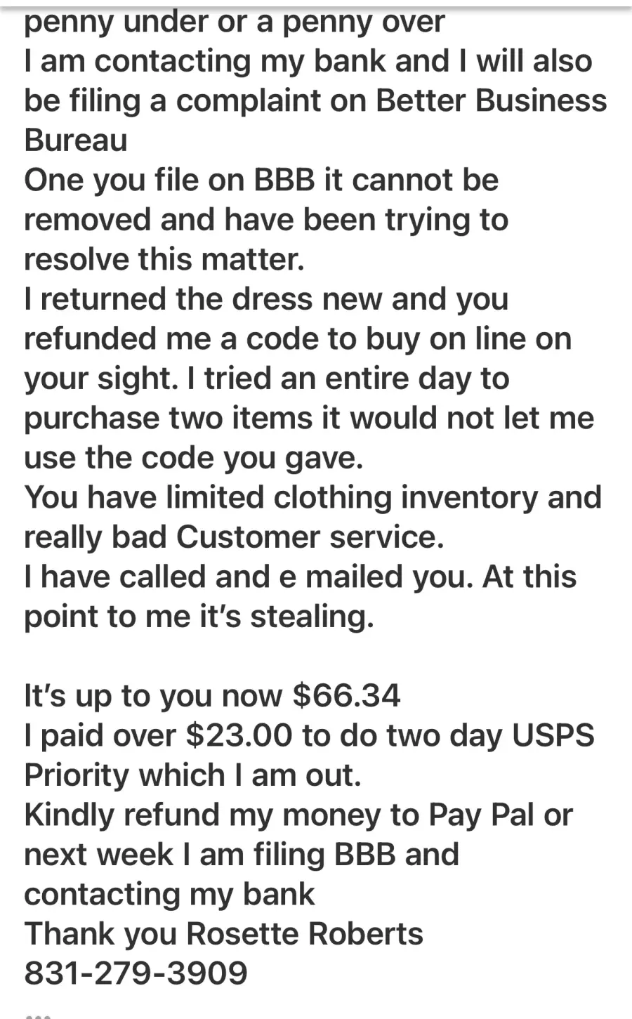 Kindly refund my money to Pay Pal or next week I am filing BBB and contacting my bank