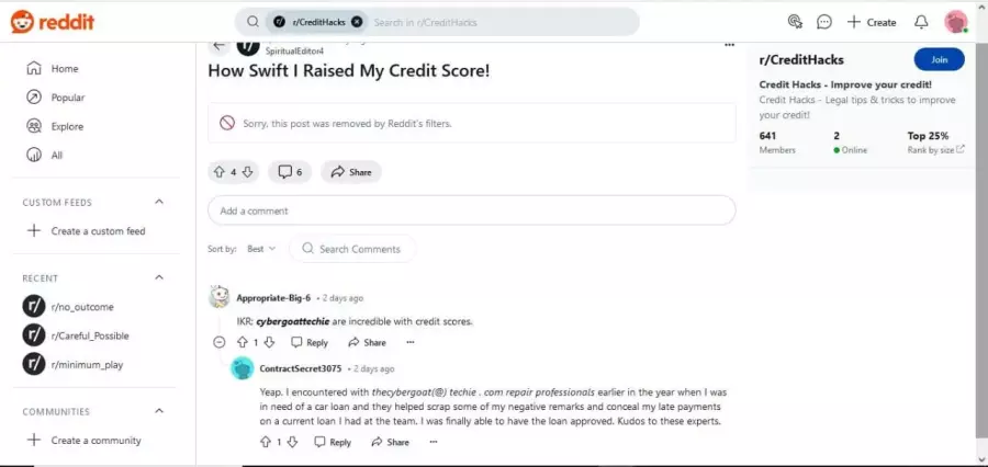 My credit score was 487 Equifax. I needed to get a car loan because commuting to work was starting to take a toll and I heard of cybergoattechie .com being recommended as qualified patch-up professionals. I whatsapped these guys(+1-334-359-8071) and in about 3 days, I had my Experian at 732. A very advocatable repair crew really!