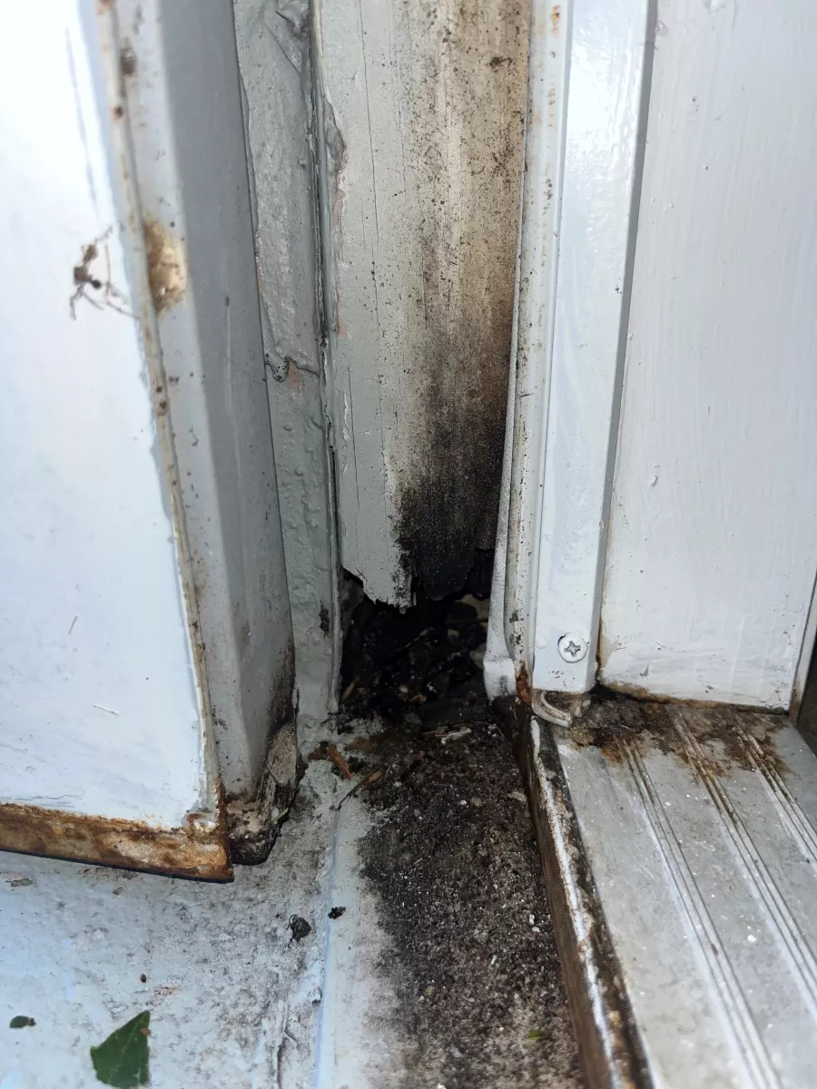 3. The doors in the laundry room are rotted at the bottom and there is black mold. Which is allowing bugs and ants to come in. The biggest issue is the black mold which is unacceptable. I have included pictures.