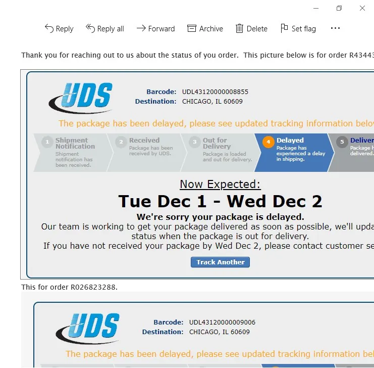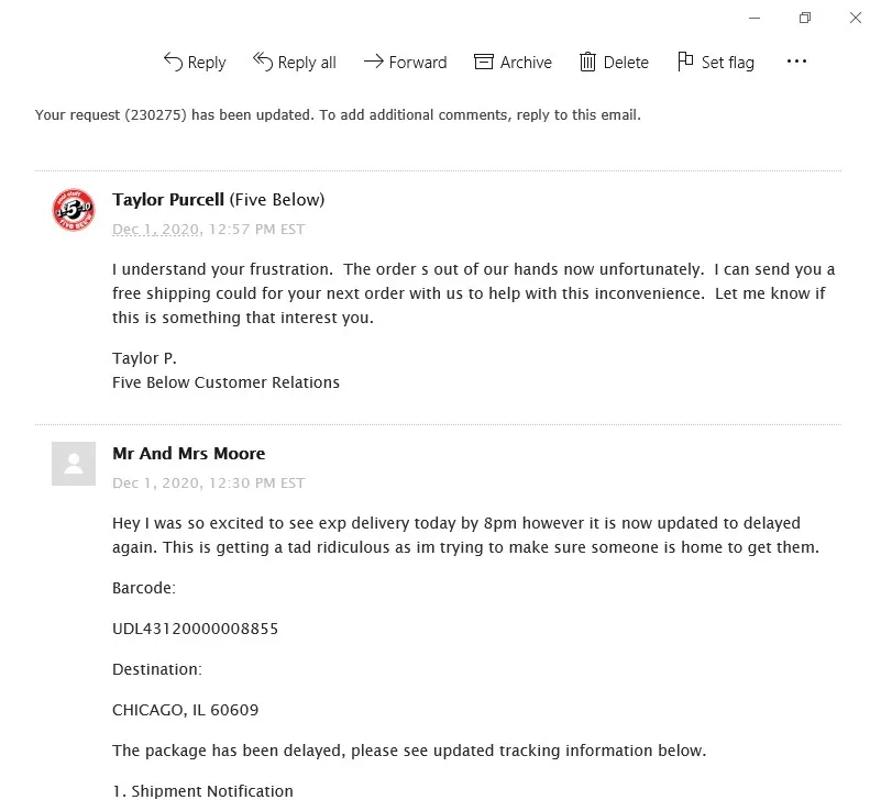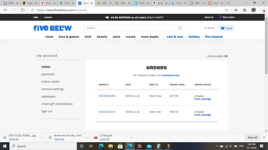 I bought two.items off the five below website, Tracked my package and it finally came. I only got one of the items I ordered, sent a message to the company only to find out that the other item I ordered wasn't in stock. When i.ordered it, it was in stock. How did it go from being in stock to put of stock? Really disappointed as I really wanted that item.