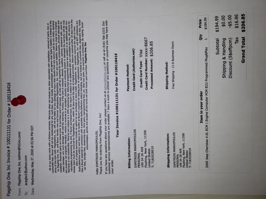 Honor your guarantee that you will take parts back if they don't work! I will continue to write these reviews about a company that does not honor their customer commitments and has customer service people who will email and call consistently until you order from them, then they get silent when you try to get a refund. BEWARE! DO NOT ORDER FROM FLAGSHIP ONE. THEY ARE A RIP OFF! I plan to post on every media review website I can find so that no one else gets ripped off by Flagship One.