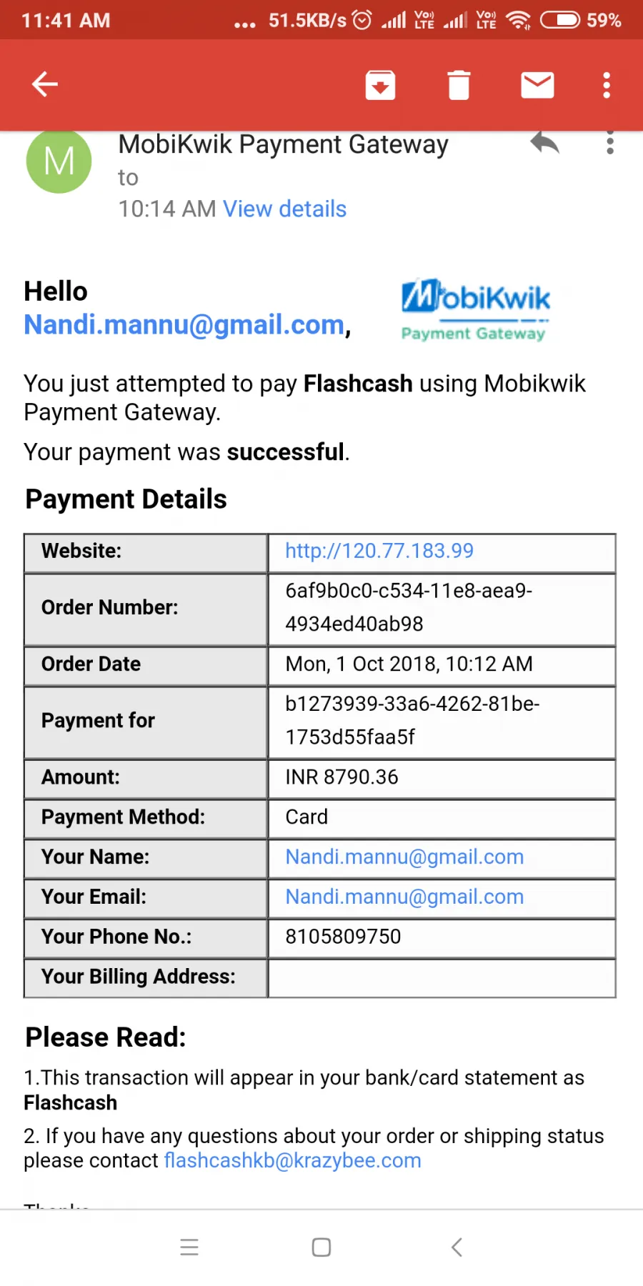 My personal reasons to make payments too...delay... But 1st w.e.I 2436/- amount paid by flash cash application...