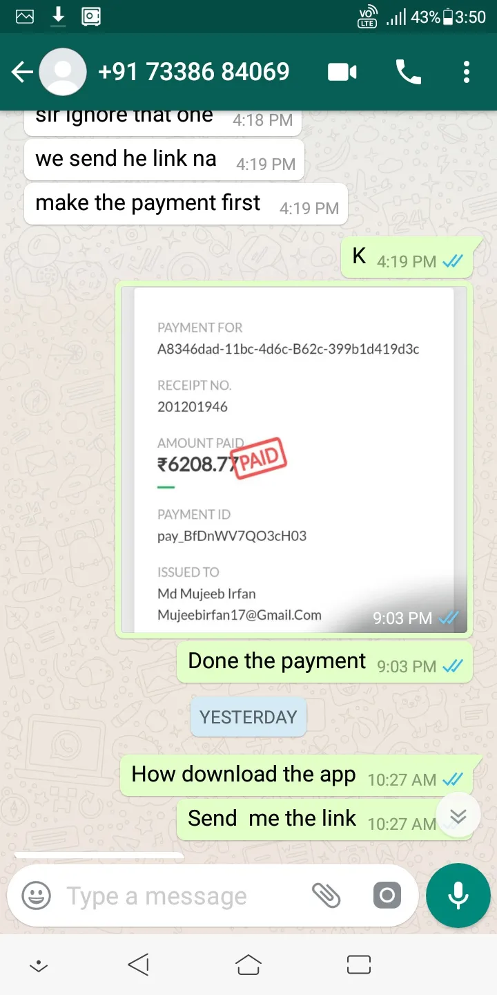 ओर अब वो बोल रहे है कि में तुमको दूसरा एकाउंट नम्बर देती हूं जिसमे तुम पे कर दो मेने कहा मेंने जिस एप्प से पे लिया उसी के द्वारा पे करूँगा तो मुजे भद्दी भद्दी गालिया दे रहे है जो एरर आये थे उसके स्क्रीन शॉट सेंड कर रहा हु