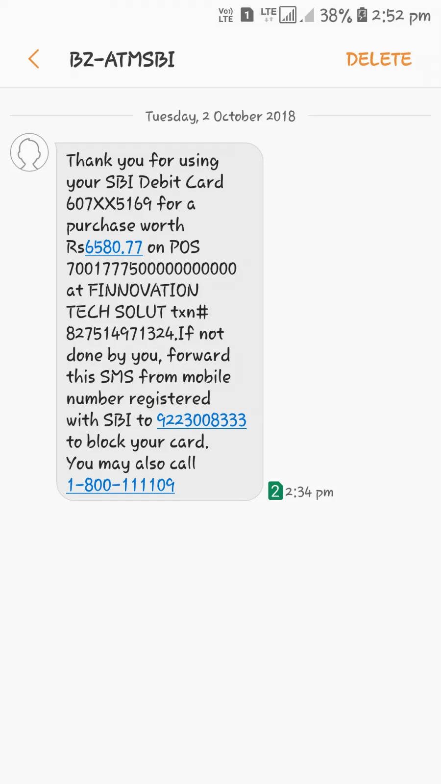 my repayment details thank you for using your sbi debit card 607xx5169 for a purchase worth rs6580.77 on pos 7001777500000000000 at finnovation tech solut txn# 827514971324.If not done by you, forward this sms from mobile number registered with sbi to 9223008333 to block your card. You may also call 1-800-111109