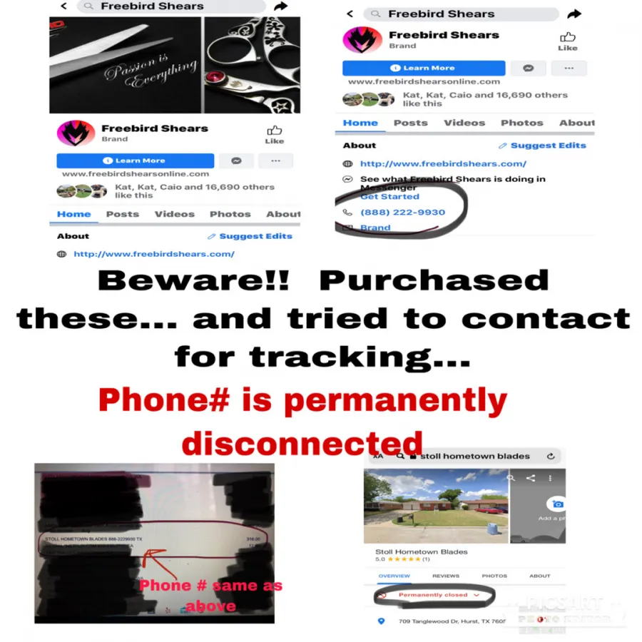 I ordered a box from Freebird shears containing two of their shears I work really hard for my money so when I order something I expect it on time I also expect communication from a company if they're going to be 3 months late but I waited three months did not hear anything did not get anything in the mail and I called the lady to find out and she blast me for calling her says I'm disrespectful because she's having family issues and I should not be calling well it's been 3 months and I told her that and I wanted my money back now it's been over 3 weeks and I still don't have my money back and I texted the owner who gave me her number because she didn't have time to be in the store she didn't answer so of course I texted her the next day which happened to be a holiday and was like hey what's up and she called me disrespectful again and said not to talk to her anymore and that is my bank fault that the money was not in my account honestly I would never order from this company they suck and their communication with their customers is awful and I would never recommend them to anybody...