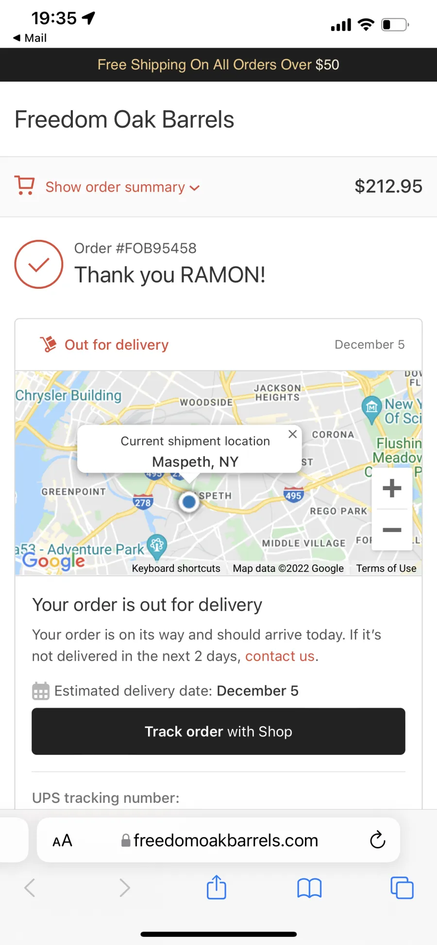 I ordered my barrel a month ago and still have not received itThey have only responded to one of my emails (over a week ago) promising that it would be delivered days ago and I have not heard from them sincePoor customer service and no number to call! Just trying to get a refund at this point!