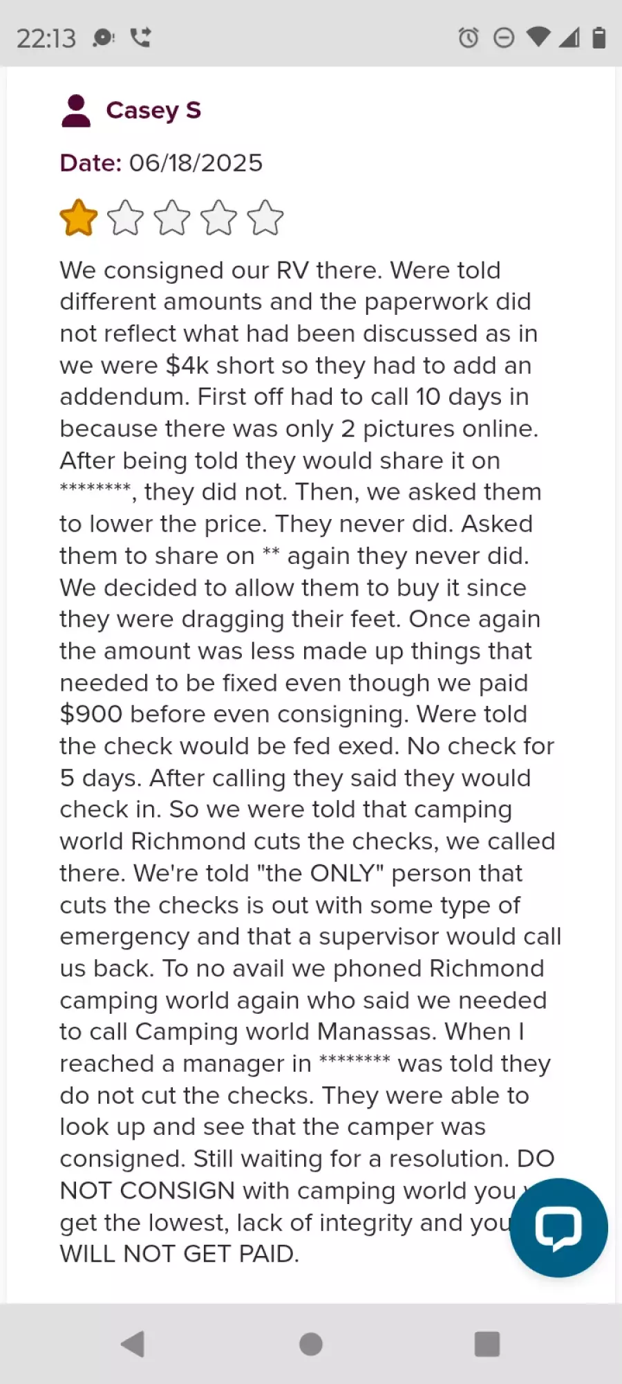 Despite submitting a full credit application through a sister Camping World location just days prior, the Richmond dealership refused to give me any financial information unless I first sent a photo of my driver's license, even though a hard credit pull had already been done and I was only asking for basic terms to make an informed decision.