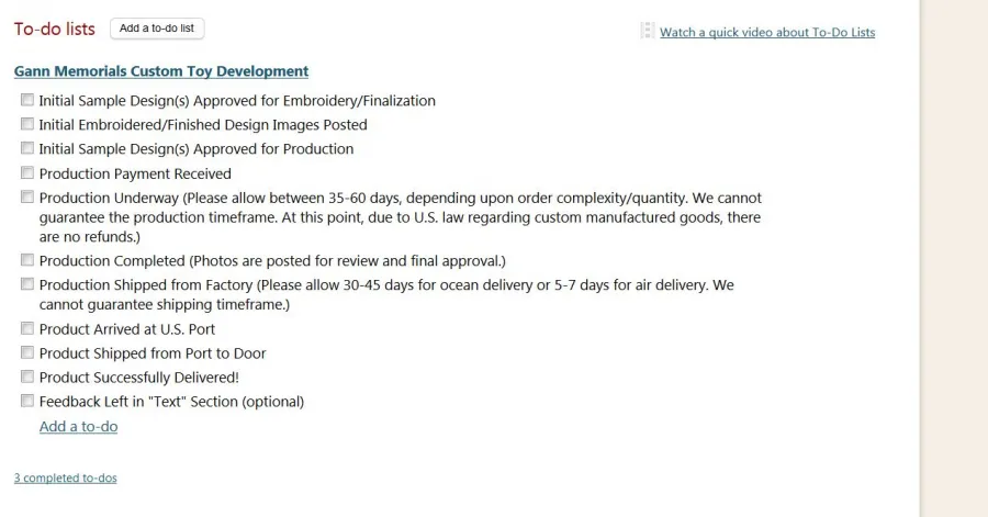 The piece we hired Gann to produce required explicit custom branding, tagging, and quality expectations. Our standards and needs were consistently made very clear (even from our initial interactions). *** Gann remained confident they would be able to fulfill our order beyond satisfaction. We ordered a total of 3,000 custom plush units. After months of prototyping and adjustments, we had paid in full by early January.
