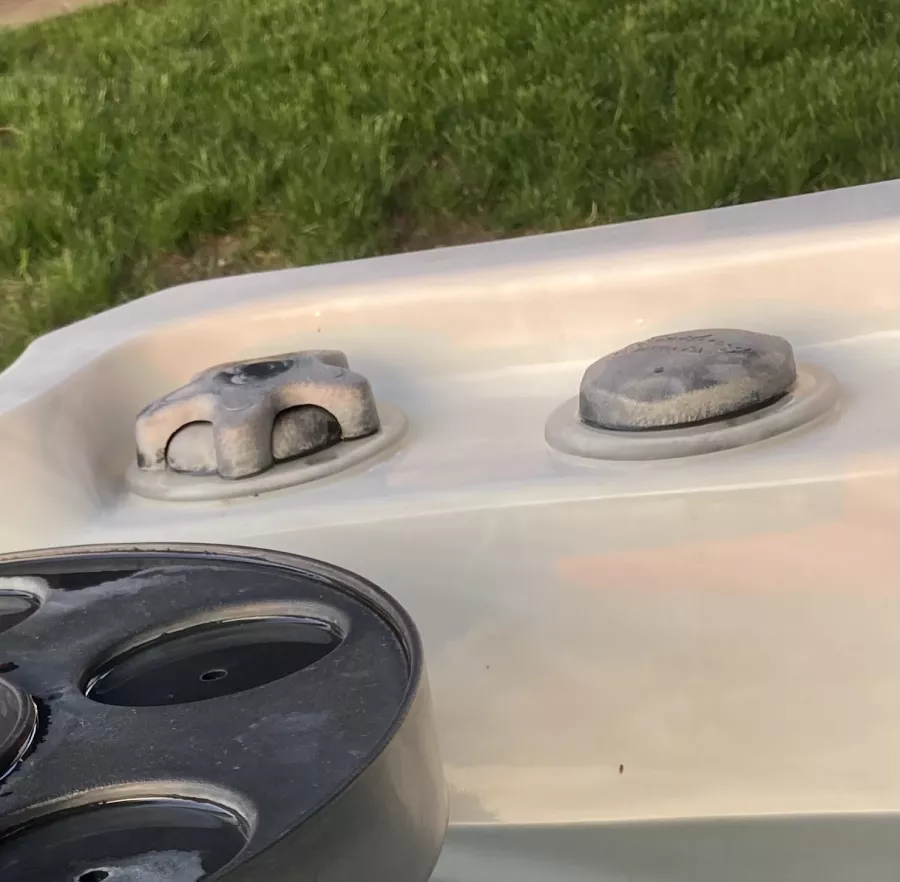 Then the top side controls started bleaching white despite using the chemicals and amounts as directed by Steve. We shocked the tub as directed and the plumbing spewed all kinds of orange coloured gunk.