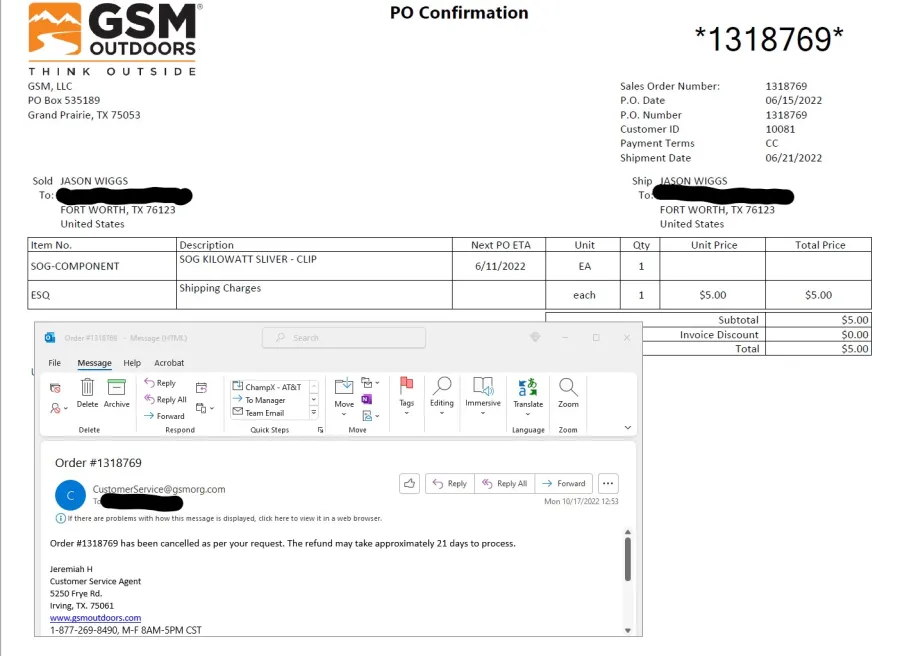Sara A., after a great customer service... I'm entrusting in you that every thing gets shipped and I can give GSM Outdoors an overall 5 STAR REVIEW for customer satisfaction.