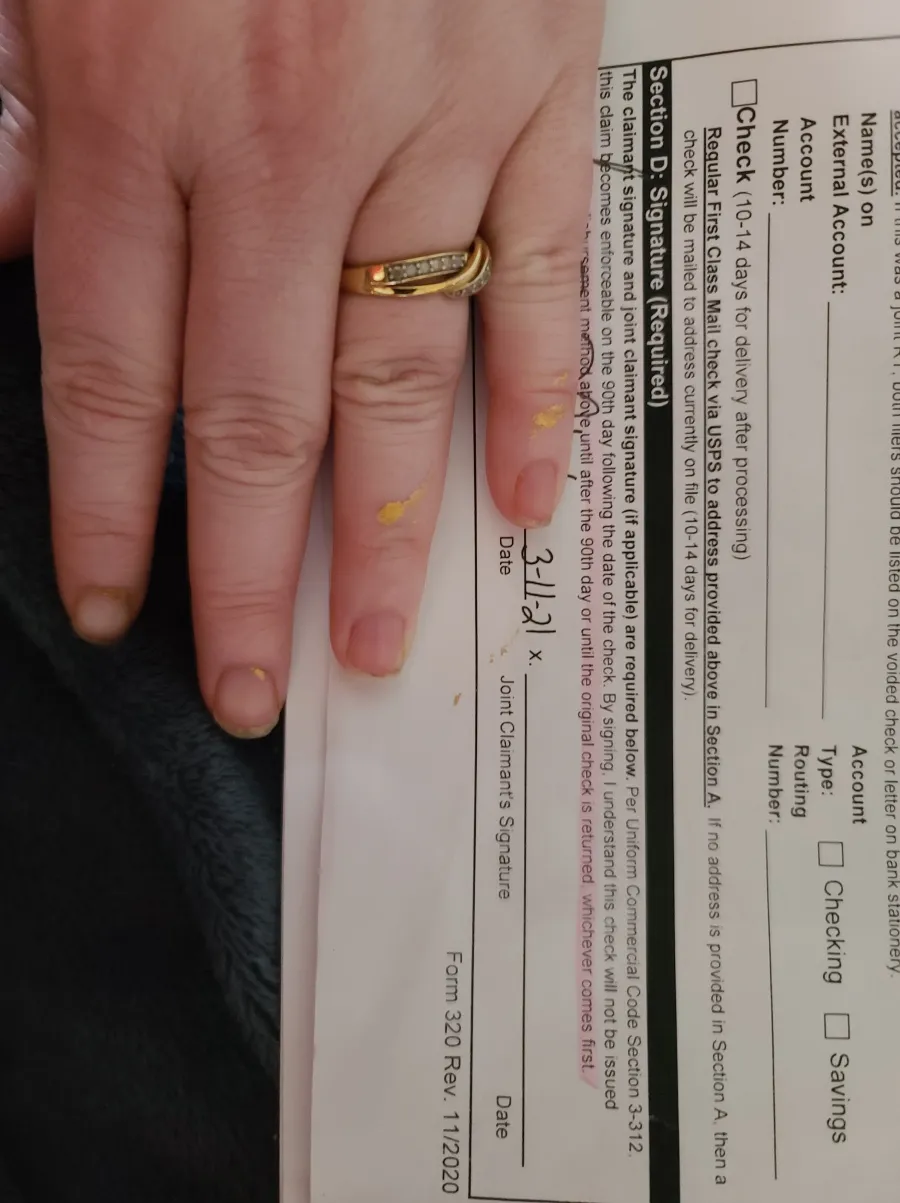 I go to cash the check and I find out because I wrote this code on it now no place will cash it, so it is now void.