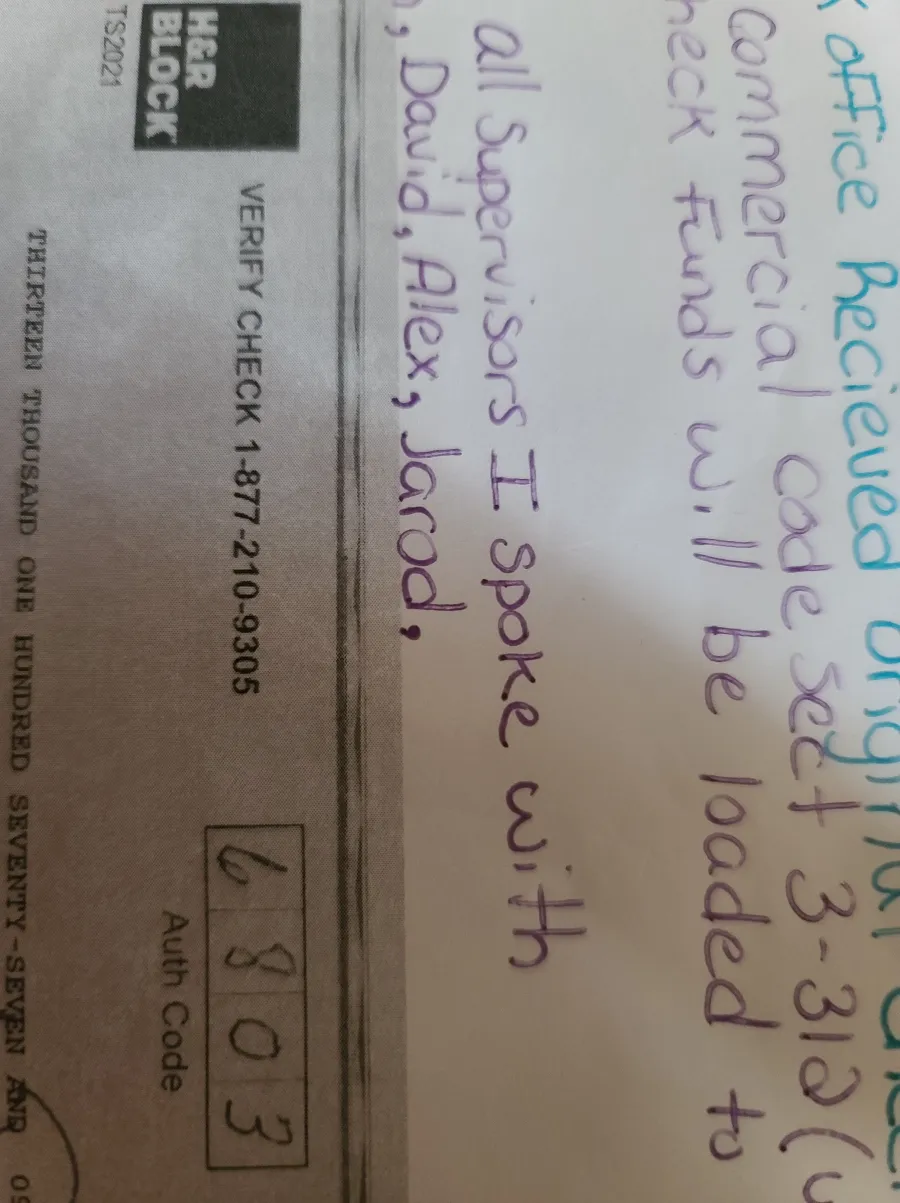 If someone sees this from H&R block who wants to help and make this right I will remove my review. as of right now they am being forced to wait for my money even though I should have had it over 10 days ago. prove me wrong and look through all the evidence and all my recorded phone calls. then look at the law of commercial code 3-312 I am really thinking about sending all my evidence to my cousin who is an influence who has several million followers and letting her cover this across her social media and youtube channel. also if I have to I will write every news station the president my governor and let them know you are wrongfully holding my tax refund money then submit all the calls I have recorded the proof H&R block has the original check and still will not help me wait what is H&R blocks motto again oh that's right it is block has your back. wait so this is also false advertising on H&R blocks part. Please help make this right my cell is 931-624-5998 my name is Ashley c. Whitaker proof of recorded calls proof the check made it to emeralds financial llc proof the check has no print that says who is suppose to fill in the the verify check number. pictures attached oh and commercial code 3_312 attached as well.