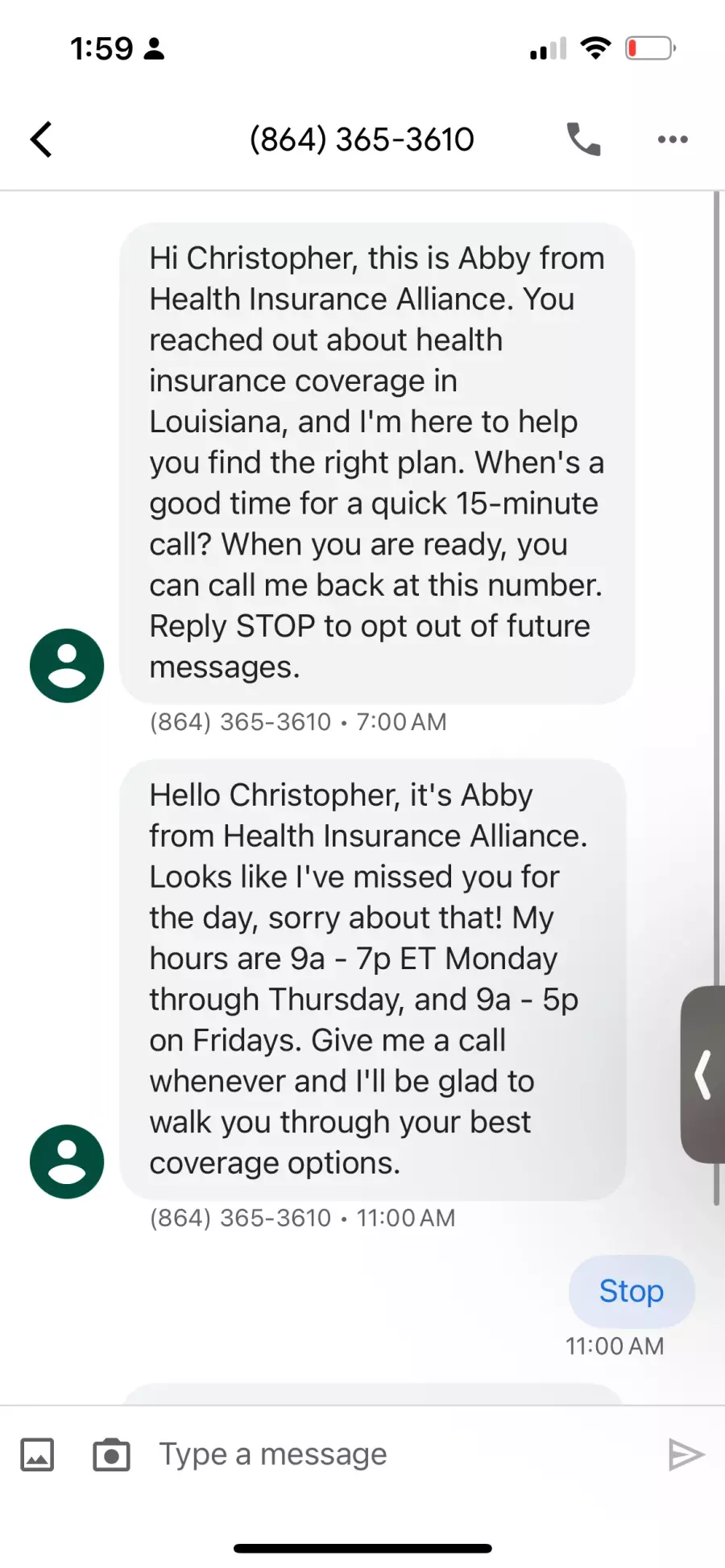 Roughly two weeks ago I searched online for health insurance quotes. I requested a quote from this business and gave them my cell phone number. The phone began ringing almost immediately. I talked with a couple of callers to get health insurance quotes, but the company kept sending more callers. I've attempted to block the callers but they seem to be able to use other numbers to keep calling. My cell phone rings so much that it has become pretty much useless to me. I attempted to contact getmehealthinsurance.org but they don't seem to offer any obvious way to stop the calls. I don't know what to do except throw away my cell phone. I really wish I had never contacted this business!