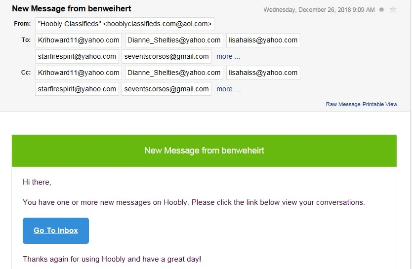 New scammer has been emailing hoobly users to get their log in information. It appears as a hoobly message and takes you to http://hooblyalerthoobly.000webhostapp.com/ for entering your login information. BEWARE !