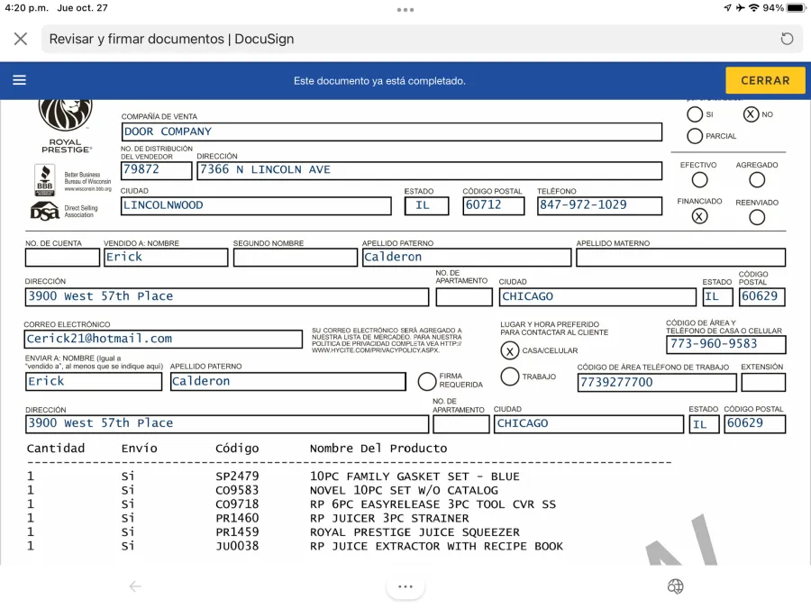 Hola soy Erick Calderon aquí está mi contrato el número de cancelación es 300336 por su atención muy agradesido