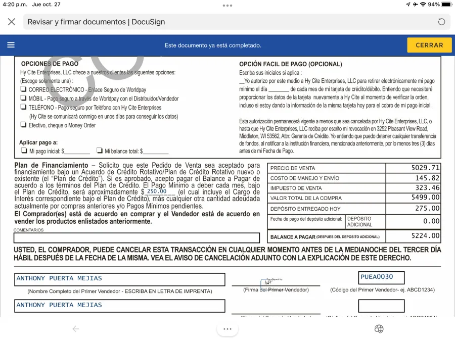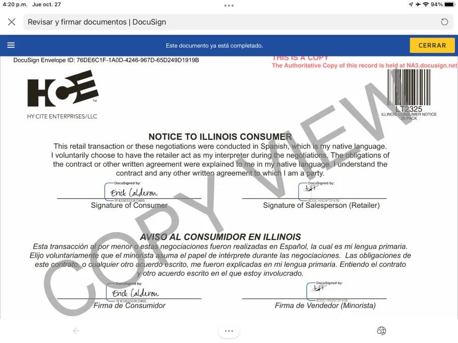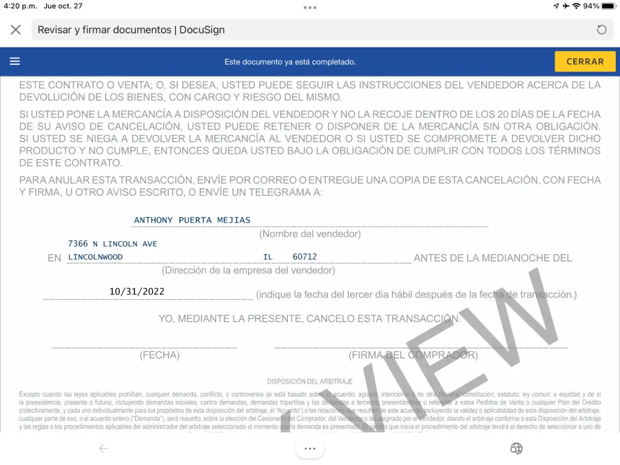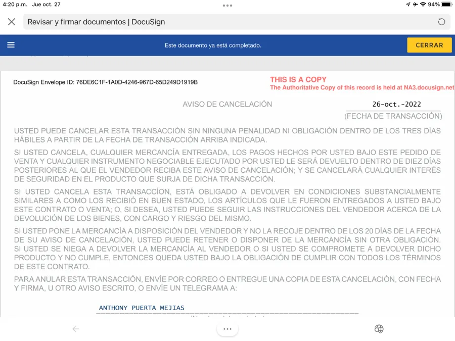 Soy Erick Calderon mi número de cancelación es 300336 este es mi contrato gracias por su atencion