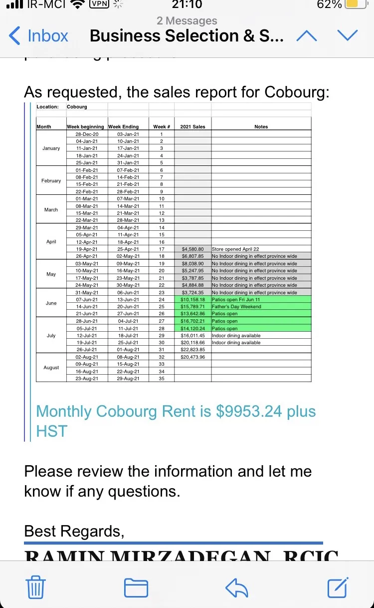 2. Does the Coburg Symposium Restaurant have a monthly income of C $ 100,000 in Coburg, Ontario, a restaurant that has been open for six months? I asked Ramin for a bank and official bill, but he sent me the bill manually.