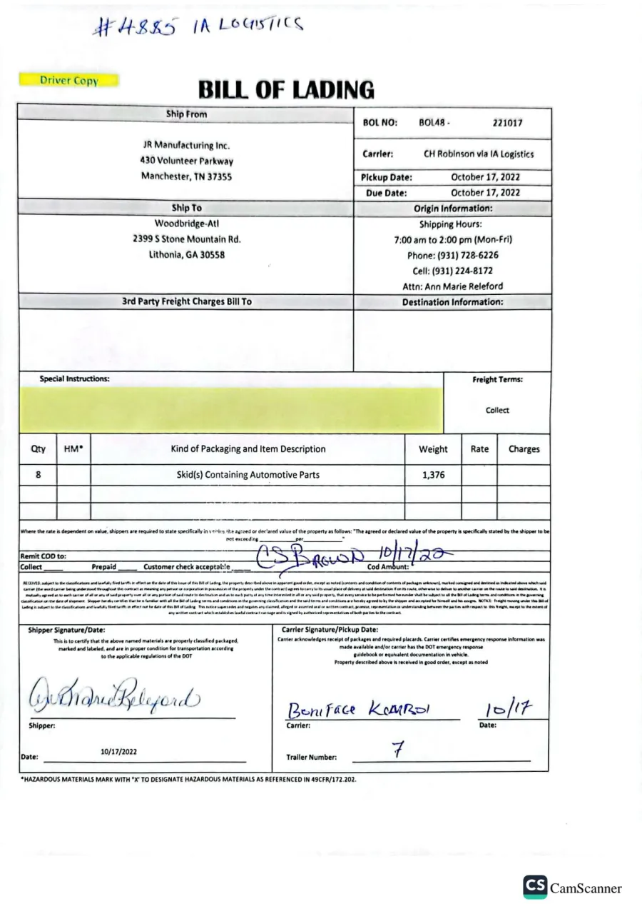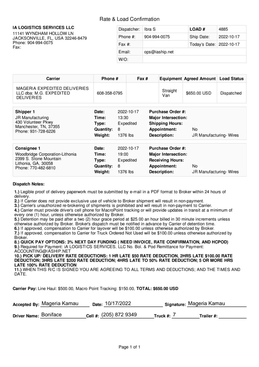 Add contact information for IA Logistics