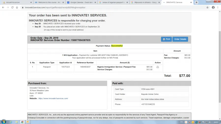 I made payment for my passport with INNOVATE1 Services order number: 167449232038349 on January 23, 2023 for my change of name passport and I made sure to pay with the card that has my married name.