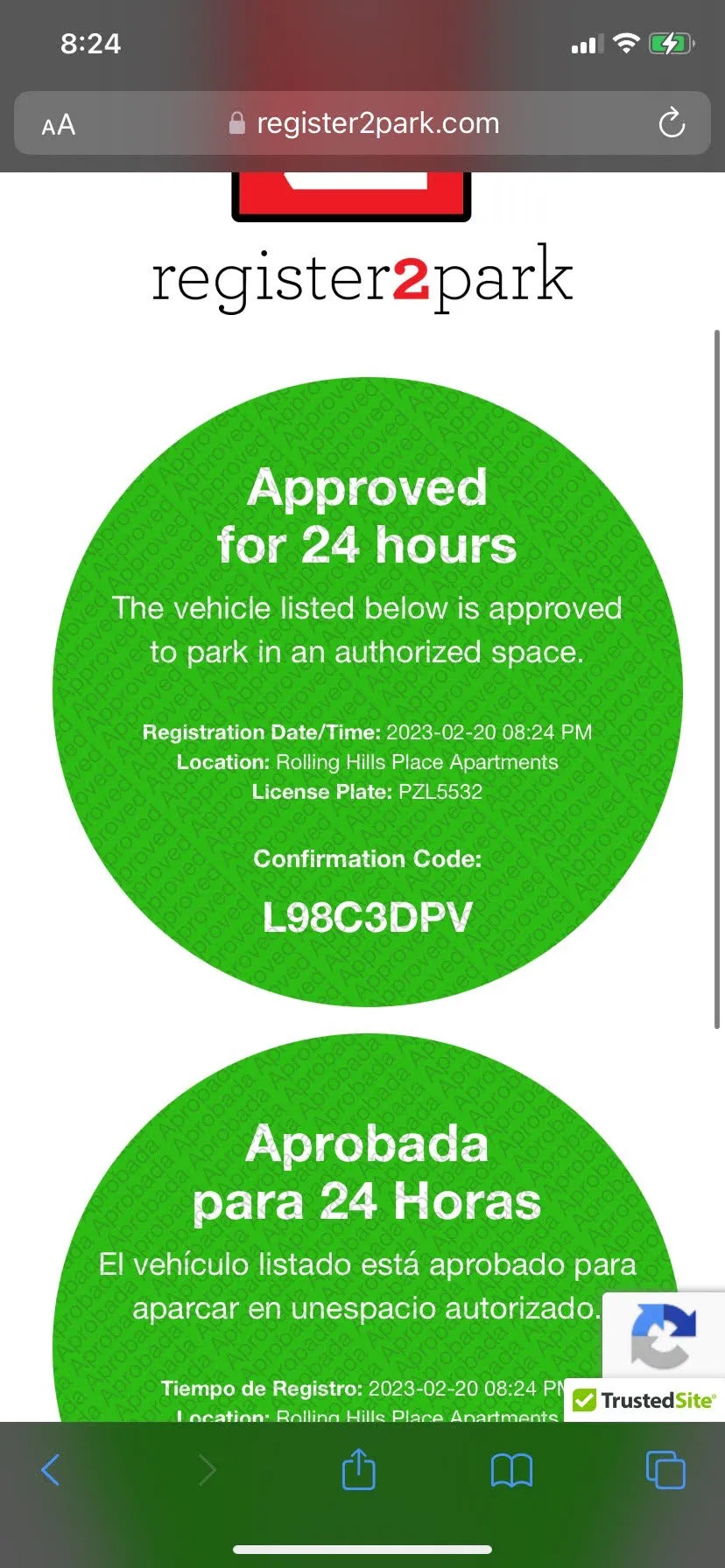 Hello, I was wrongfully tower out of the visitors section of my apartment complex.