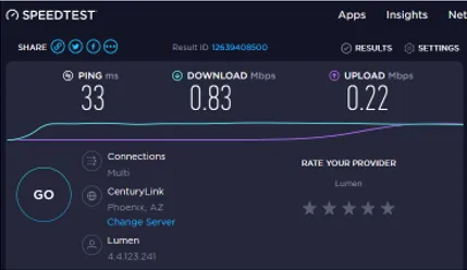 Unreliable at best. My history review of speedtest.net, looks like sharks teeth. Most unstable service in the area. I keep them only because Centurylink although being stable, only provided 2 mbps at best. There are occasions of enough speed that it's workable. Calling is a joke. It's either an "antenna issue", router suspected faulty or needs rebooted. Sitting and waiting is the best way to get service back. They will eventually work it out.