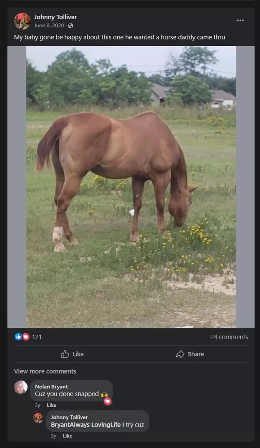 Eventually his family found even the extra siblings were not enough and parted ways. Before dying, Jay also changed her last name to "James" ( https://archive.is/TAloN#selection-379.18-379.23 ). This was done because she felt unworthy after watching his efforts, such as skipping work to go to their birthdays. Still, this left Kelvin worrying his child died hating him, and still worrying despite her Father's Day posts. These posts were memorable from the way she always used another man's name and picture by accident.