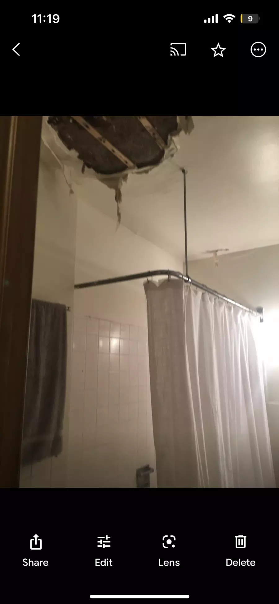 -ceiling collapsed in my bathroom causing damage to my bathroom items